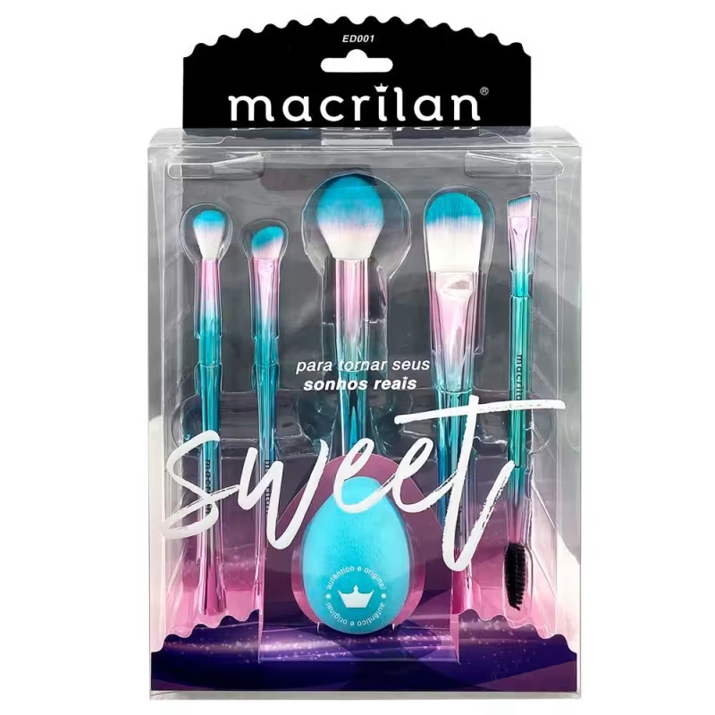 O Kit Sweet da Macrilan reúne 5 pincéis essenciais para um acabamento profissional com praticidade: do preparo da pele ao esfumado dos olhos, as cerdas sintéticas macias depositam, espalham e esfumam os produtos com precisão, garantindo cobertura uniforme, transições suaves e aquele toque aveludado que valoriza qualquer maquiagem — do dia a dia às produções mais elaboradas.