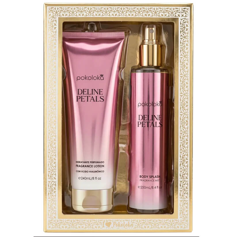 O Kit Deline Petals da Pokoloka traz o combo perfeito para quem quer pele macia e perfume gostoso o dia todo. São dois produtos que trabalham juntos: o hidratante prepara a pele e fixa o aroma, e o body splash dá aquele toque final de frescor. Você sai do banho cheirosa e segue assim por horas.