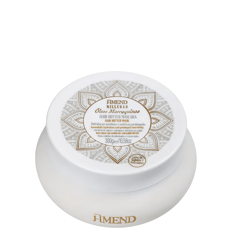 Quer devolver a maciez e o brilho dos seus fios em poucos minutos? A Máscara Capilar Hair Butter Óleos Marroquinos da Amend é uma manteiga capilar que age rápido para nutrir cabelos secos e ásperos. Em apenas uma aplicação, você já sente o cabelo mais macio, alinhado e com toque sedoso.