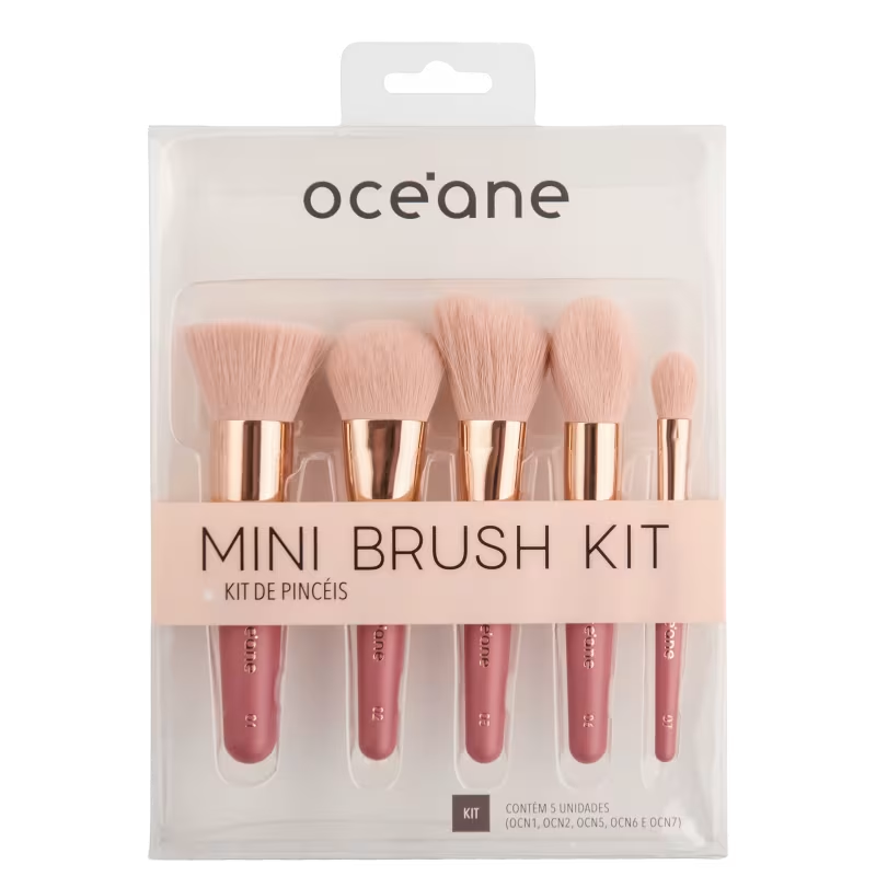 Praticidade e acabamento profissional em tamanho compacto. O Mini Kit Brush com 5 Pincéis Coral da Océane reúne pincéis essenciais para uma maquiagem completa, com cerdas macias e design funcional que facilitam a aplicação e o esfumado. Ideal para levar na bolsa ou em viagens, garante versatilidade sem abrir mão do desempenho.